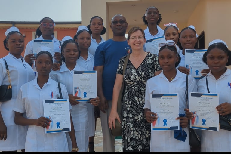 Our first class of 13 Auxiliary Nurses graduated from the two-year program in February. Four of them will be employed at Divine Mercy Hospital.